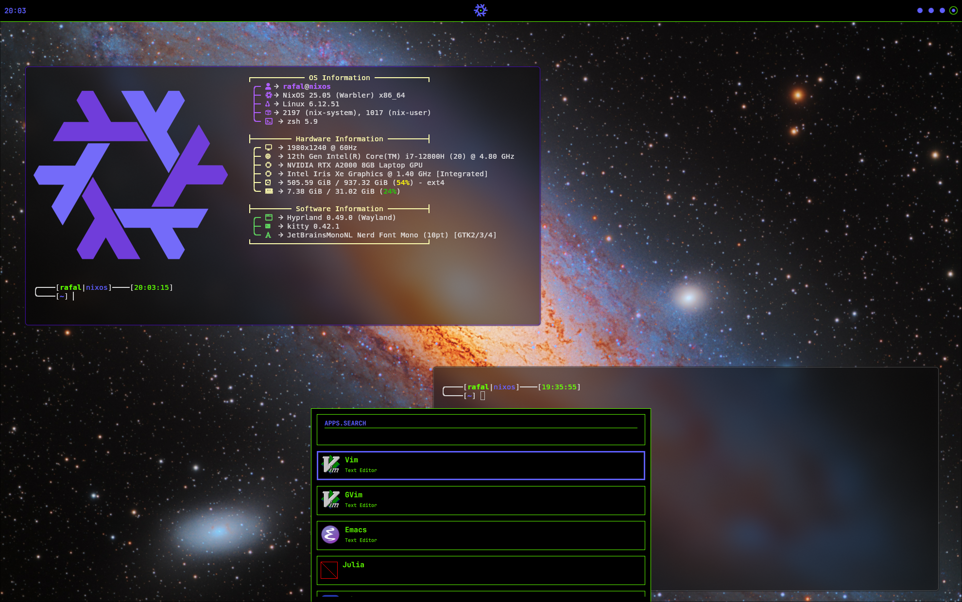 It's just a simple application runner with a search bar, nothing special. The feature I want to add and already made preparations for is launching an application using any of my system-wide development shells defined in my system flake.